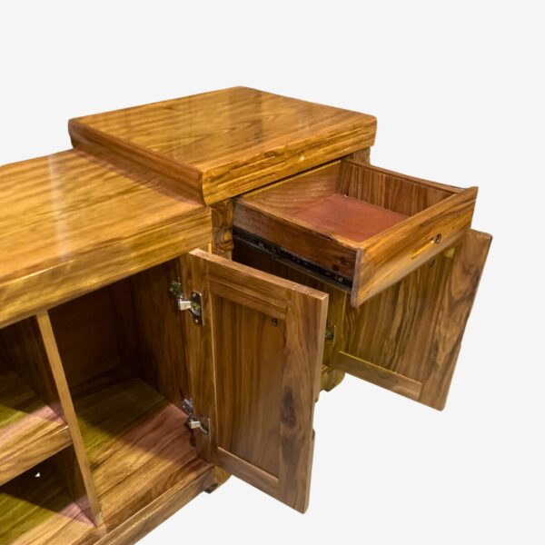 Tủ Kệ Tivi Gỗ Hương Xám Nhô 2 Đầu mang trong mình thiết kế đẹp, hiện đại phù hợp với nhiều phong cách thiết kế khác nhau. Có thể điều chỉnh màu sắc cho khách hàng lựa chọn để tạo điểm nhấn và kết hợp hài hòa với những đồ nội thất phòng khách khác như ghế sofa, bàn trà sofa, tủ giày…